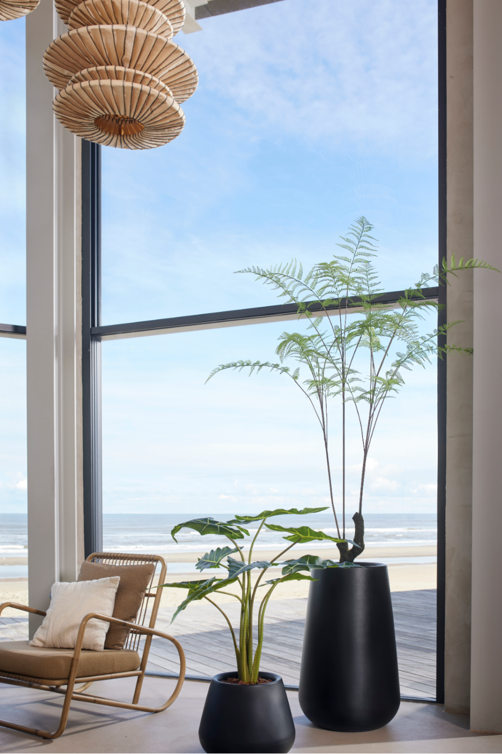 Decorative Potted Faux Plant Set (2) | Emerald Fern Forest On Trunk